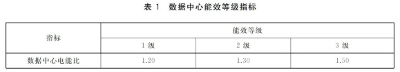 該標準規(guī)定了數(shù)據(jù)中心的能效等級與技術要求、統(tǒng)計范圍、測試與計算方法。數(shù)據(jù)中心能效等級共分為3級,1級表示能效最高;3級能效為數(shù)據(jù)中心能效限定值。