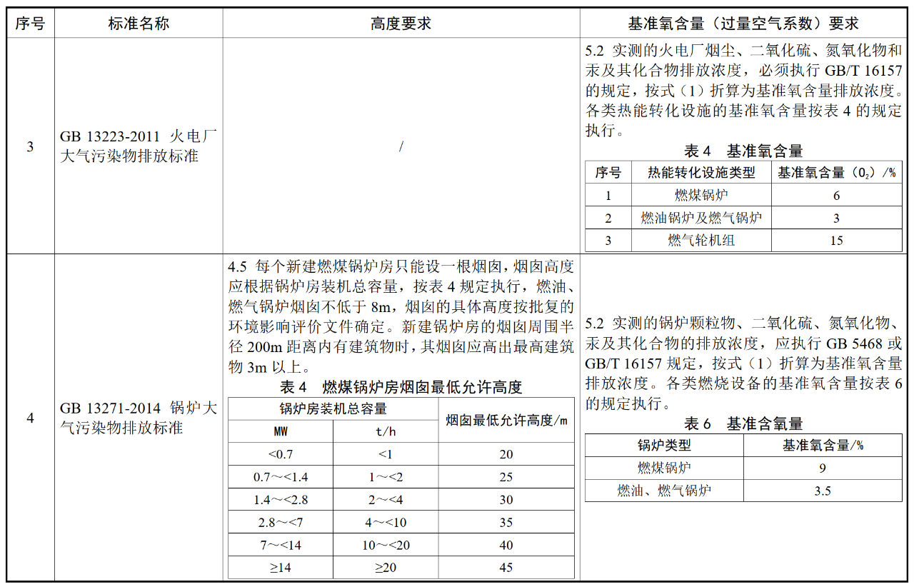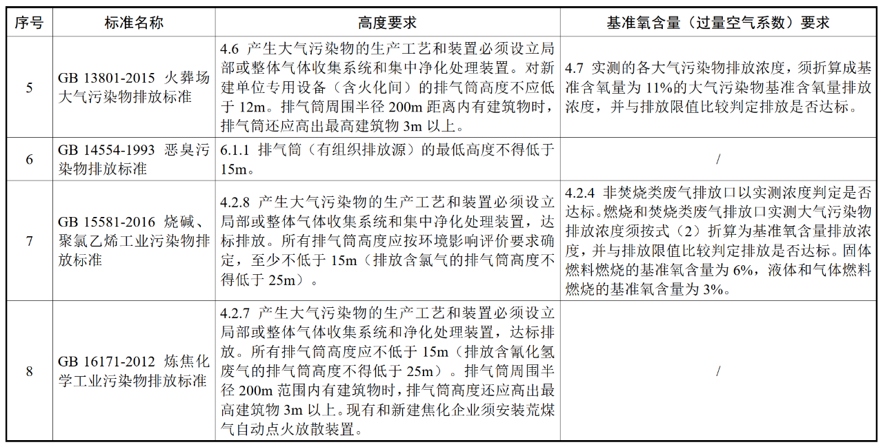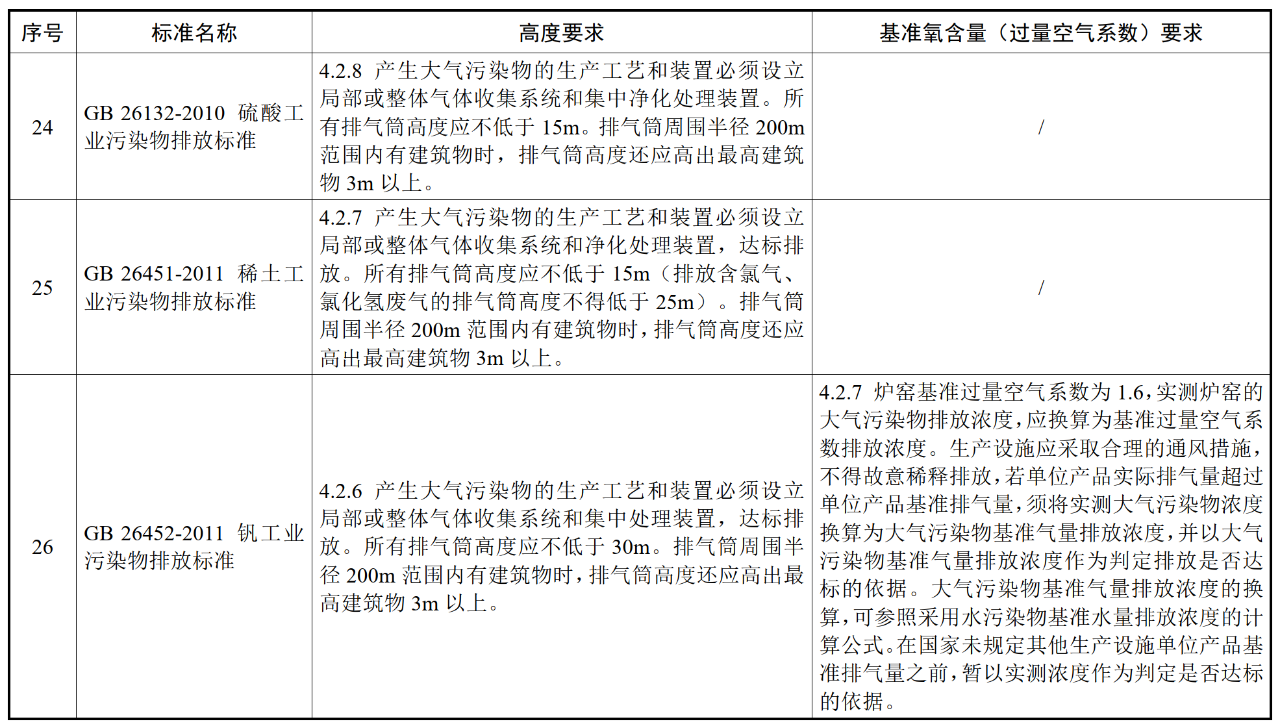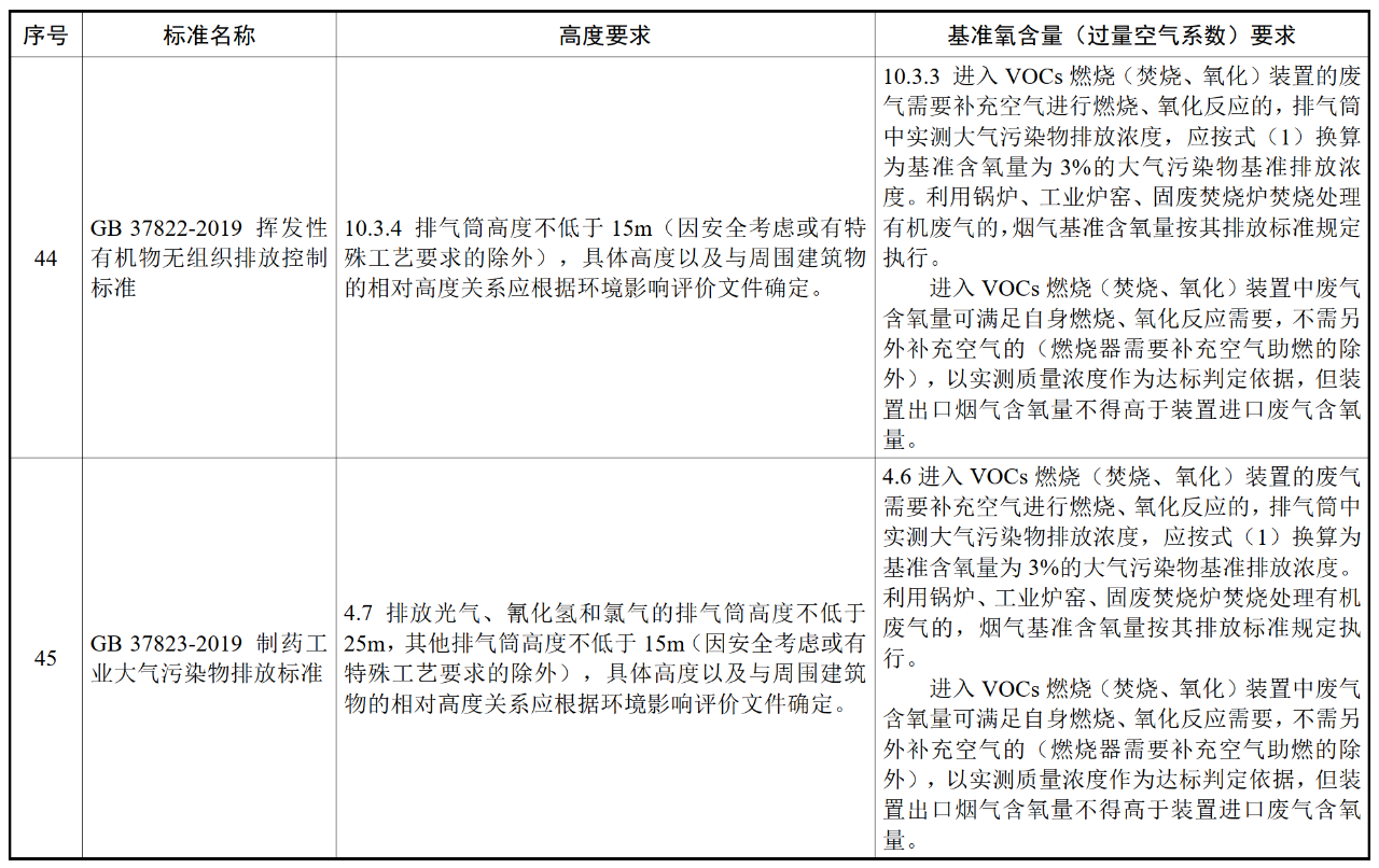 各行業(yè)大氣污染物(含VOCs)排氣筒高度及基準氧含量要求