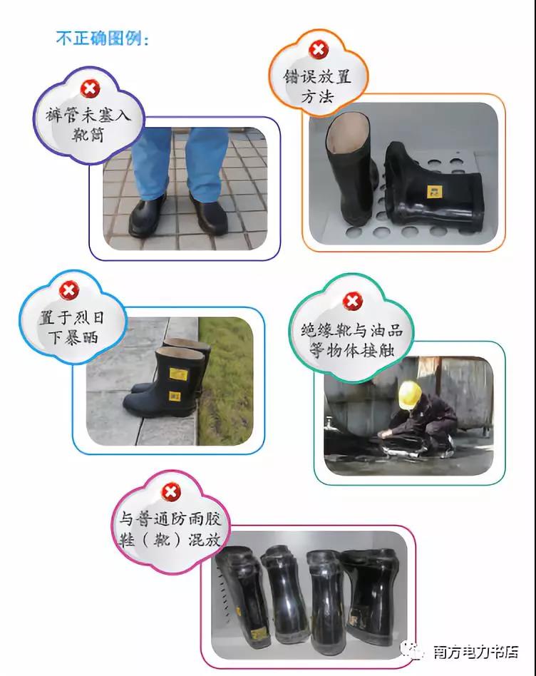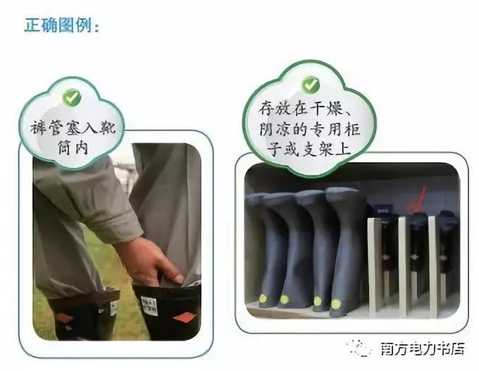 (2)使用絕緣靴應(yīng)選擇與使用者相符合的鞋碼,將褲管套入靴筒內(nèi),并要避免絕緣靴觸及尖銳的物體,避免接觸高溫或腐蝕性物質(zhì)。