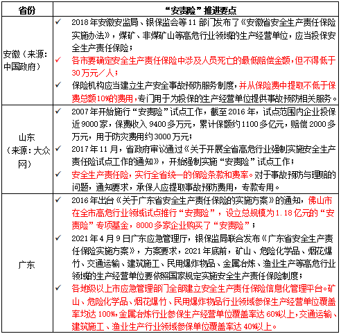 地方政府對“安責(zé)險(xiǎn)”的實(shí)施高度重視。據(jù)調(diào)查,已有超過30個(gè)省、自治區(qū)、直轄市出臺了關(guān)于“安責(zé)險(xiǎn)”實(shí)施意見或采取了有效措施,組織投保企業(yè)的數(shù)量不斷增加,專項(xiàng)資金、保險(xiǎn)費(fèi)用、保障額度規(guī)模不斷擴(kuò)大。