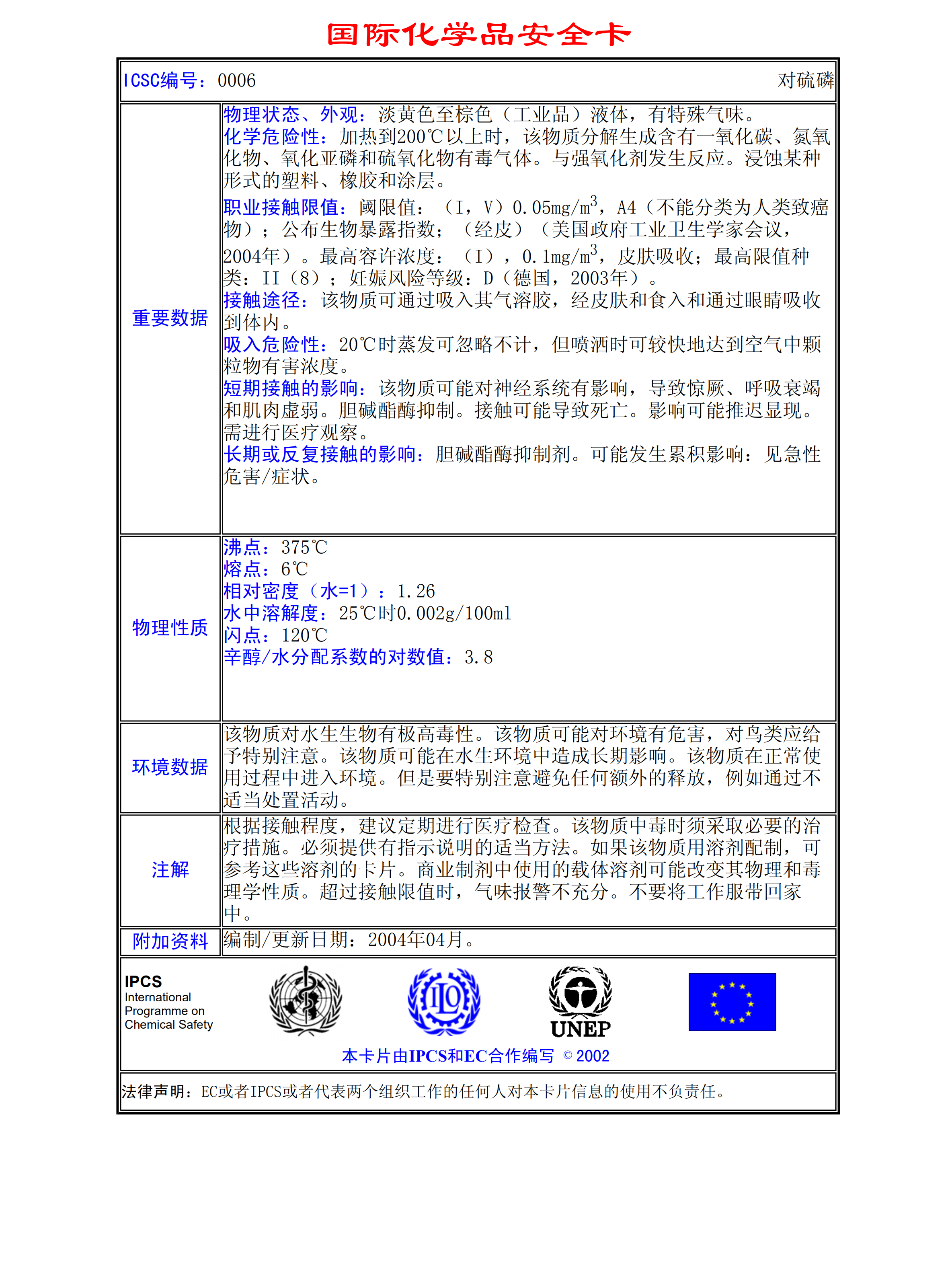 對(duì)硫磷MSDS