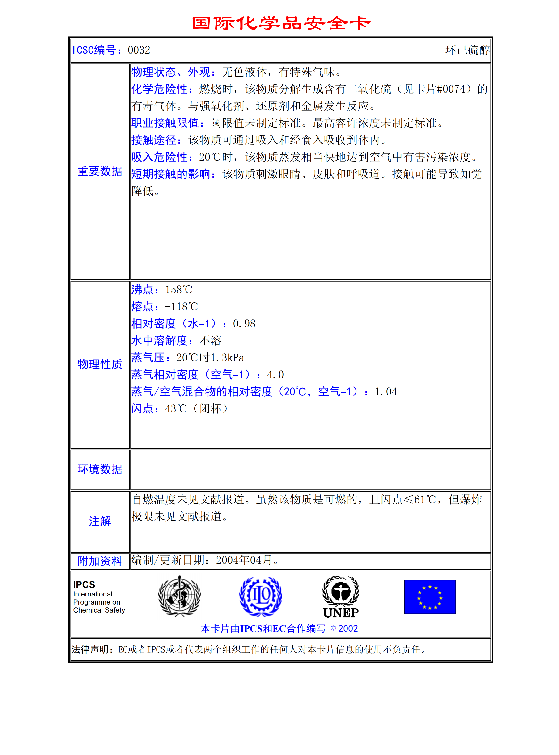 環(huán)己硫醇MSDS