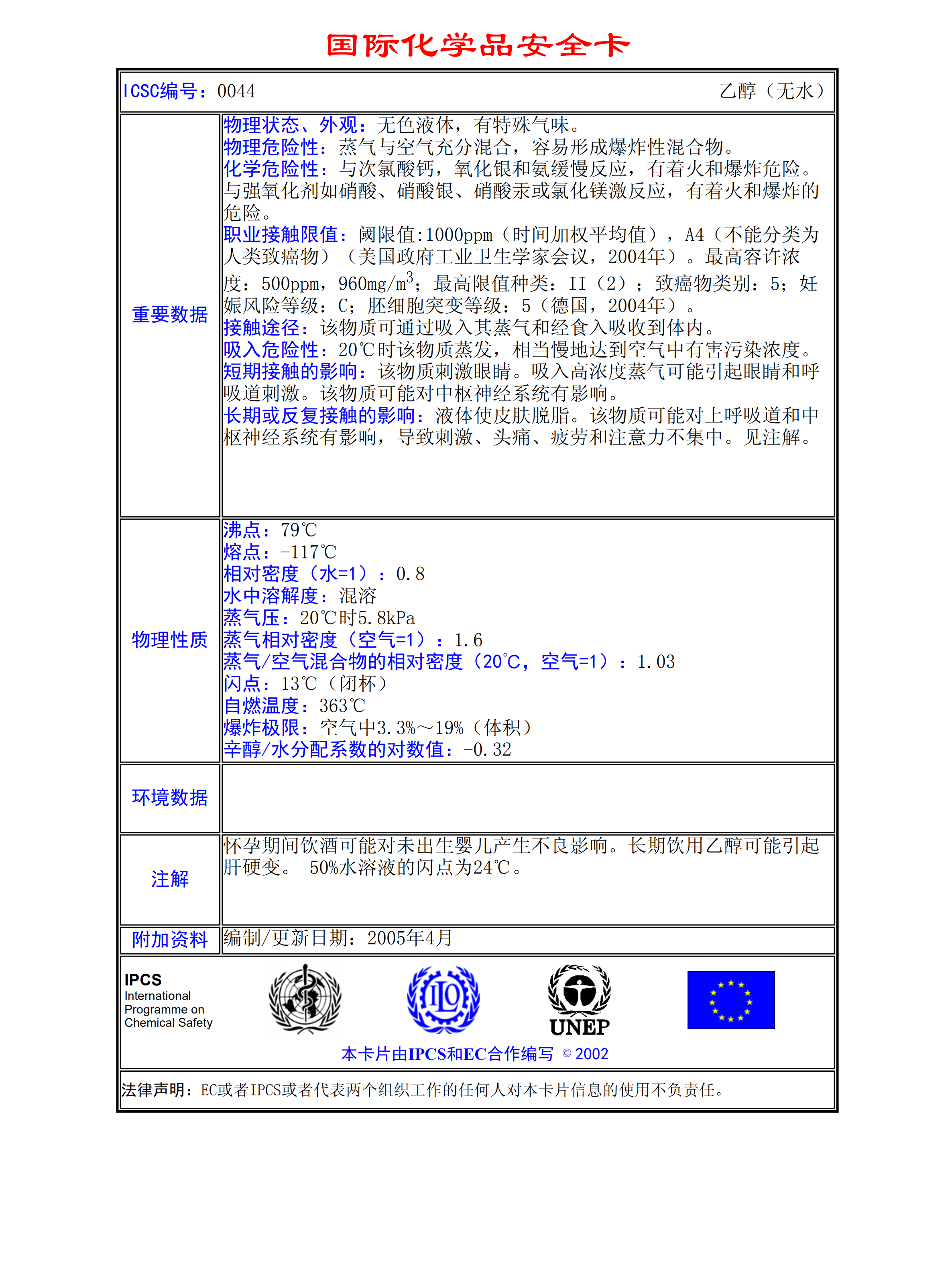 乙醇(無(wú)水)MSDS
