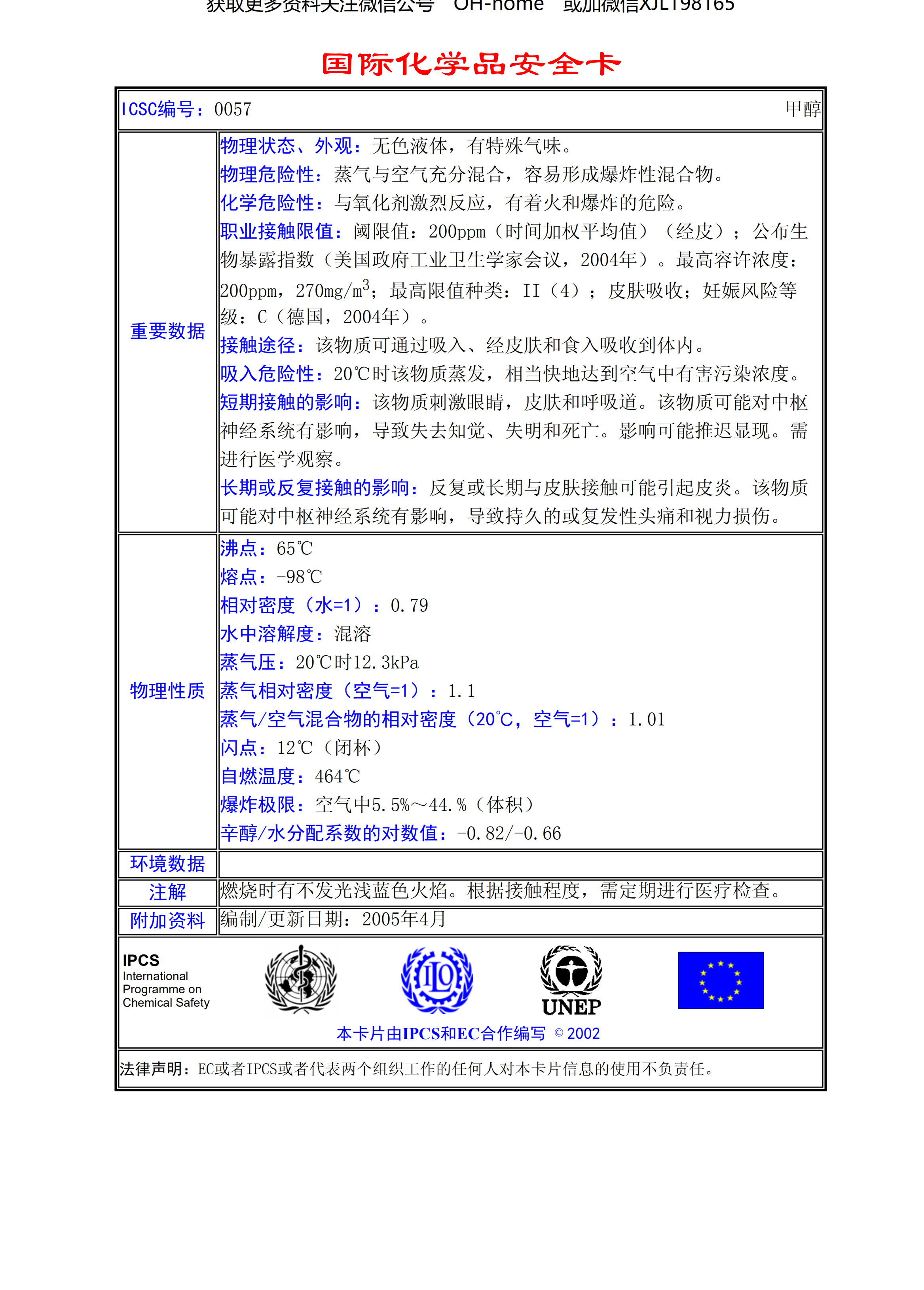 甲醇MSDS