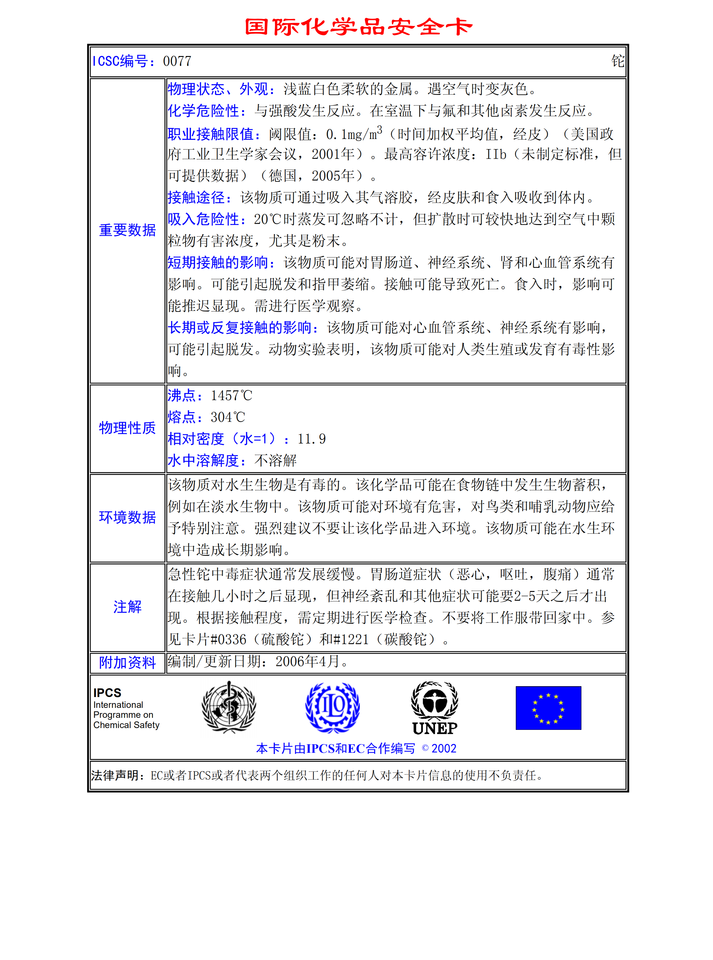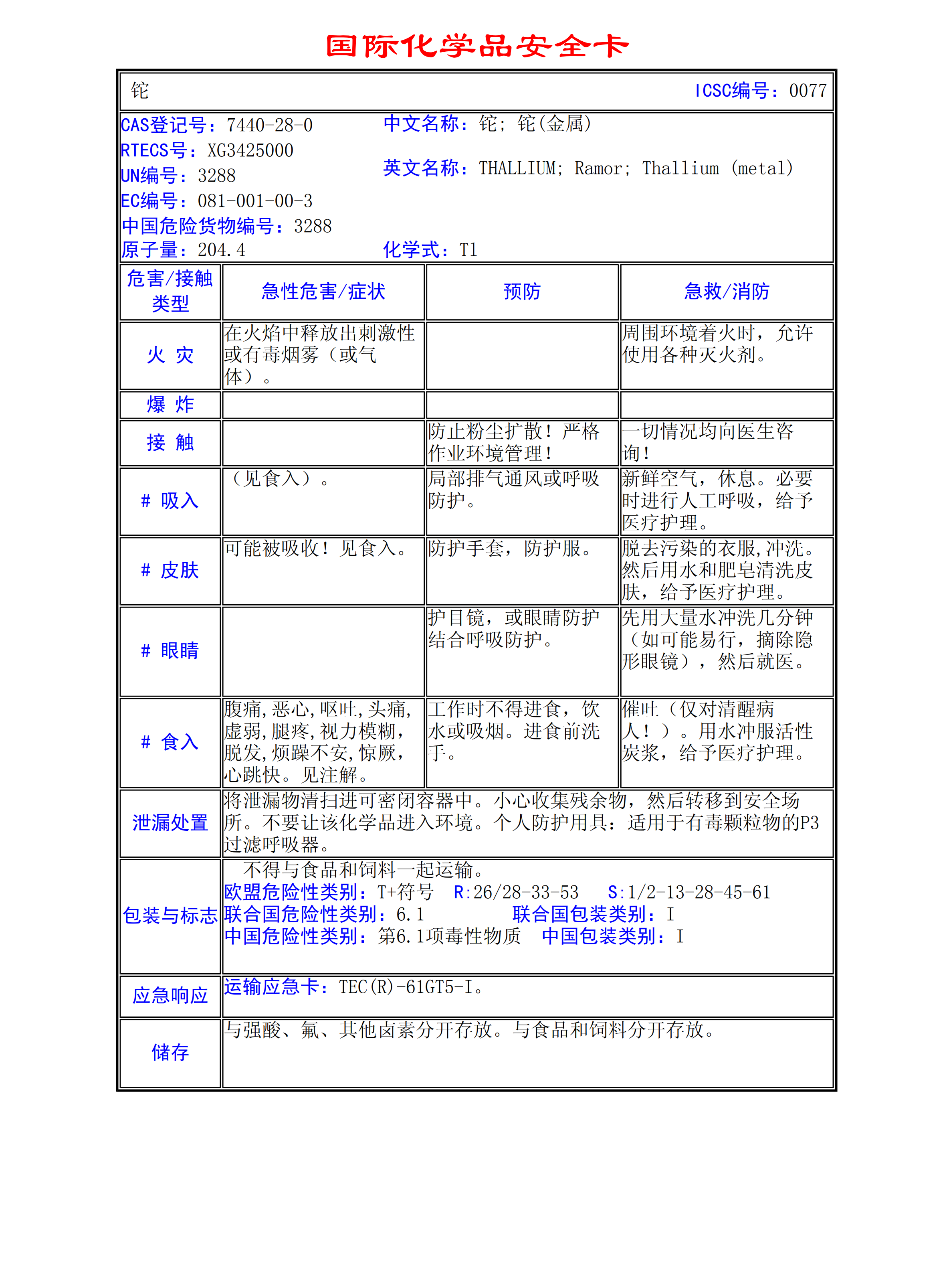 鉈MSDS