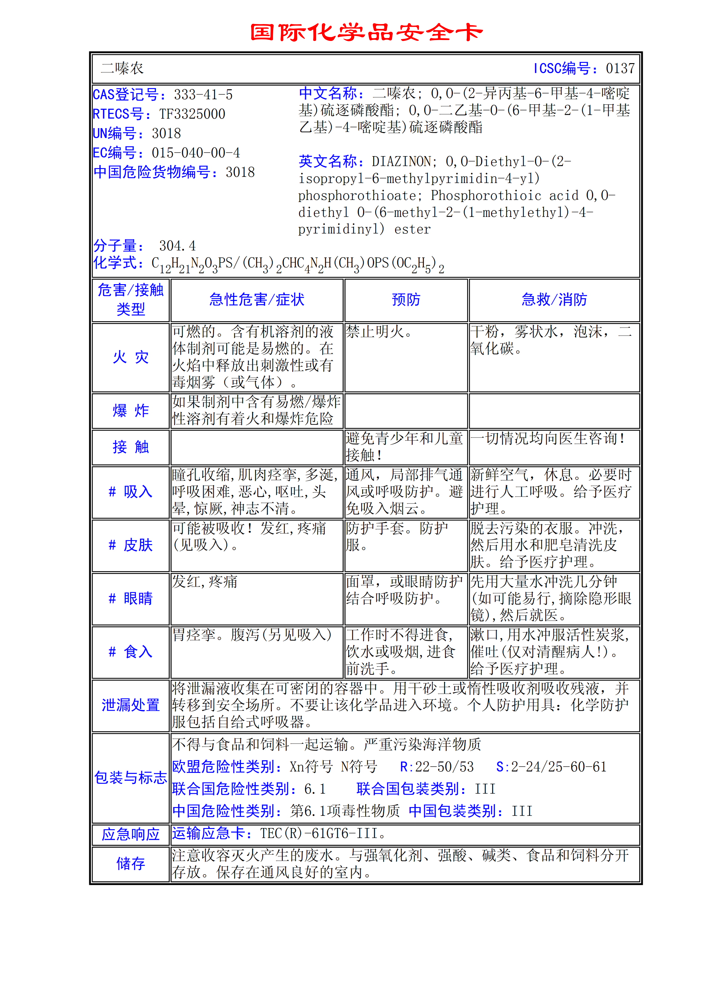 二嗪農(nóng)MSDS