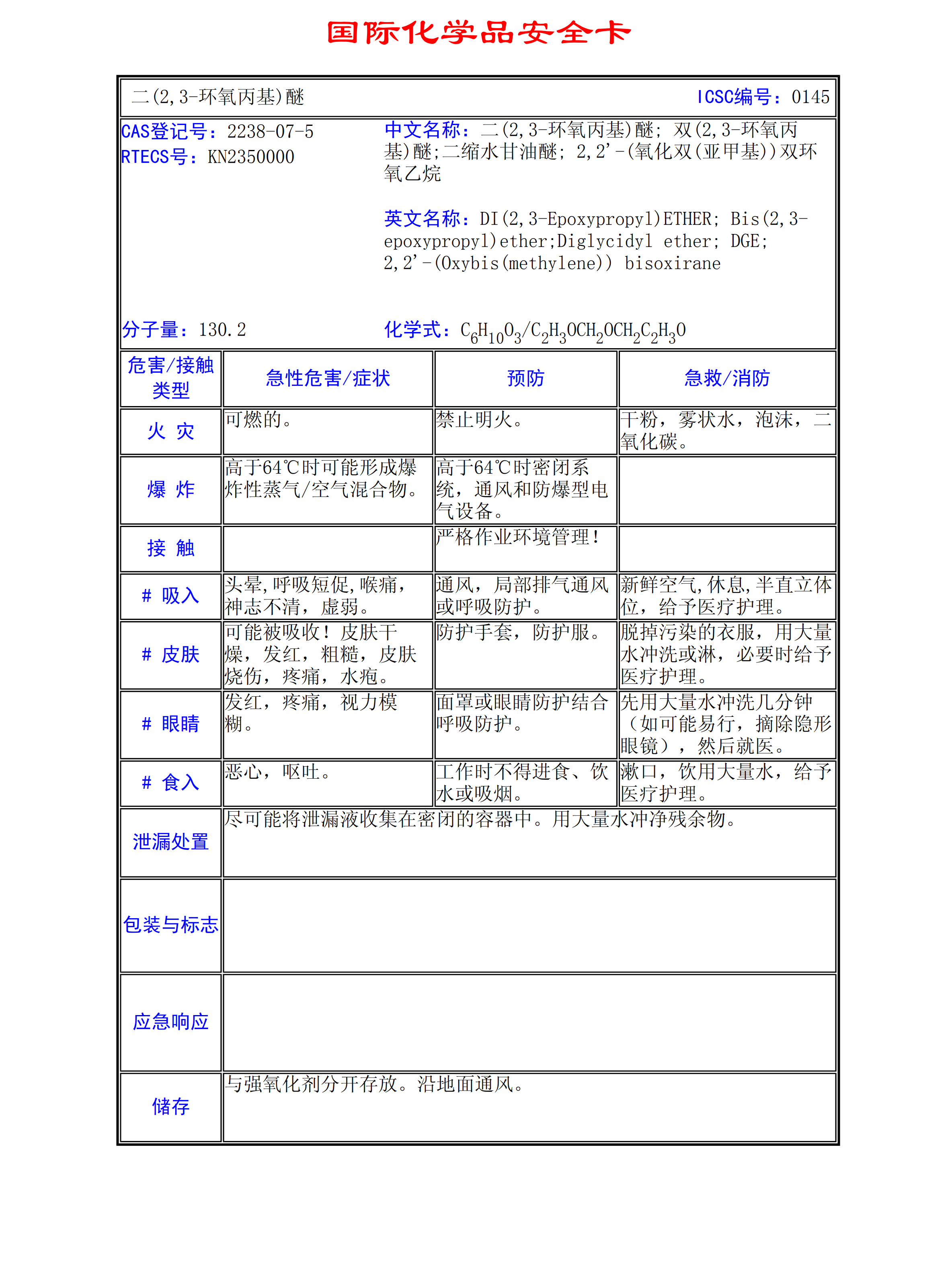 二甘醇二縮水甘油醚MSDS