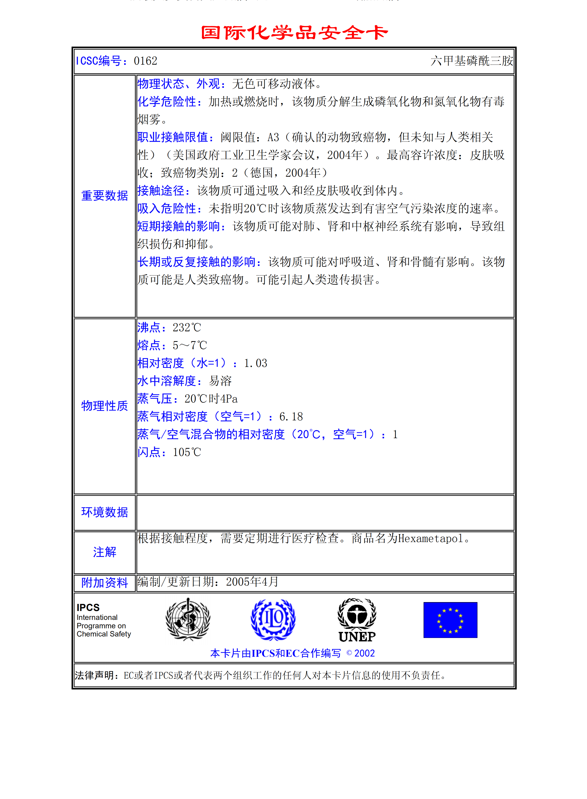 六甲基磷酰三胺MSDS