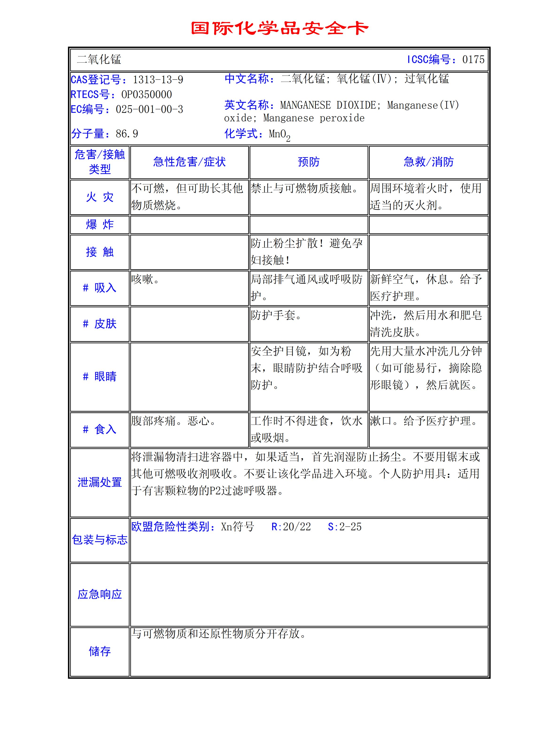 二氧化錳MSDS