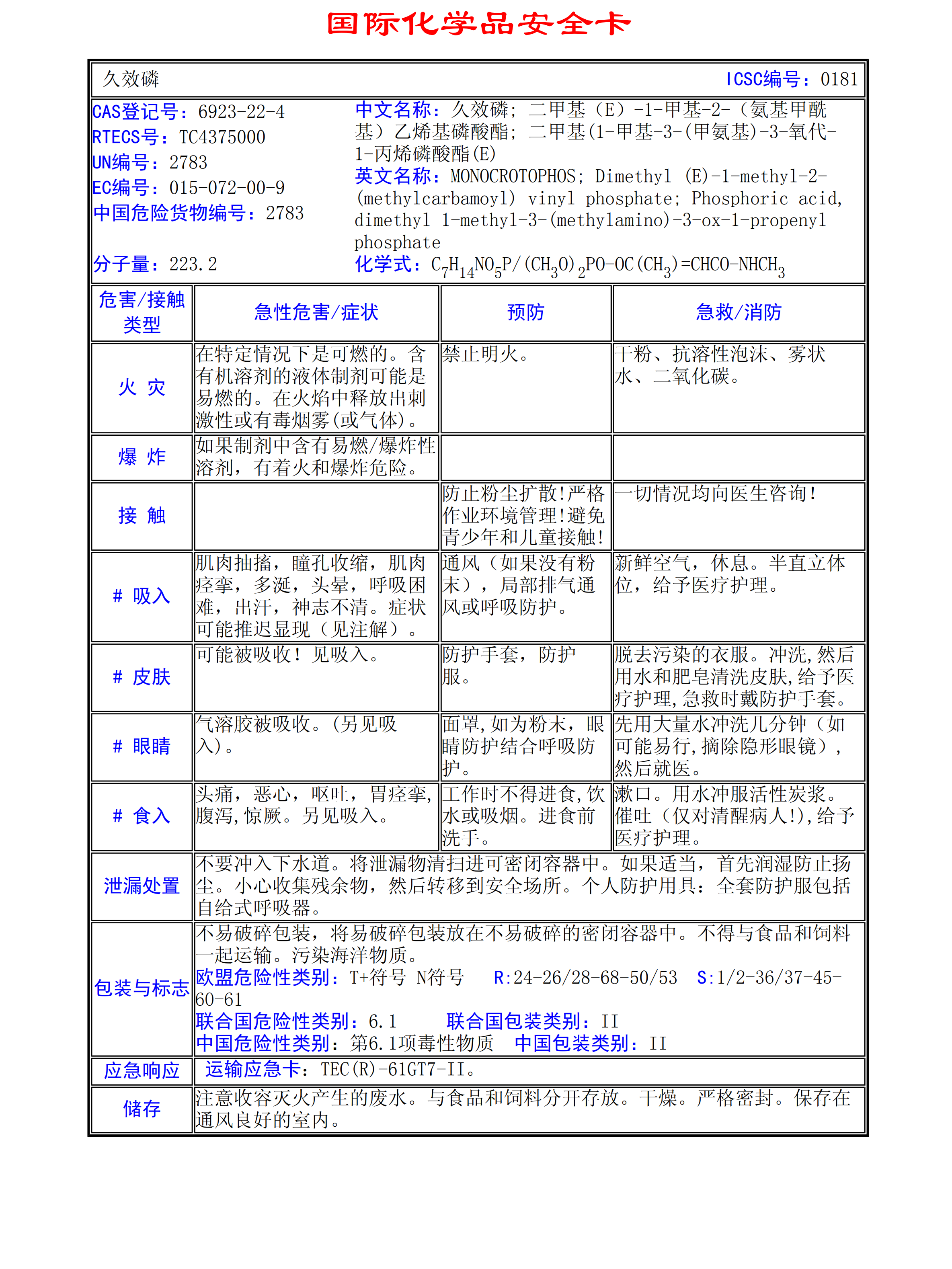 久效磷MSDS