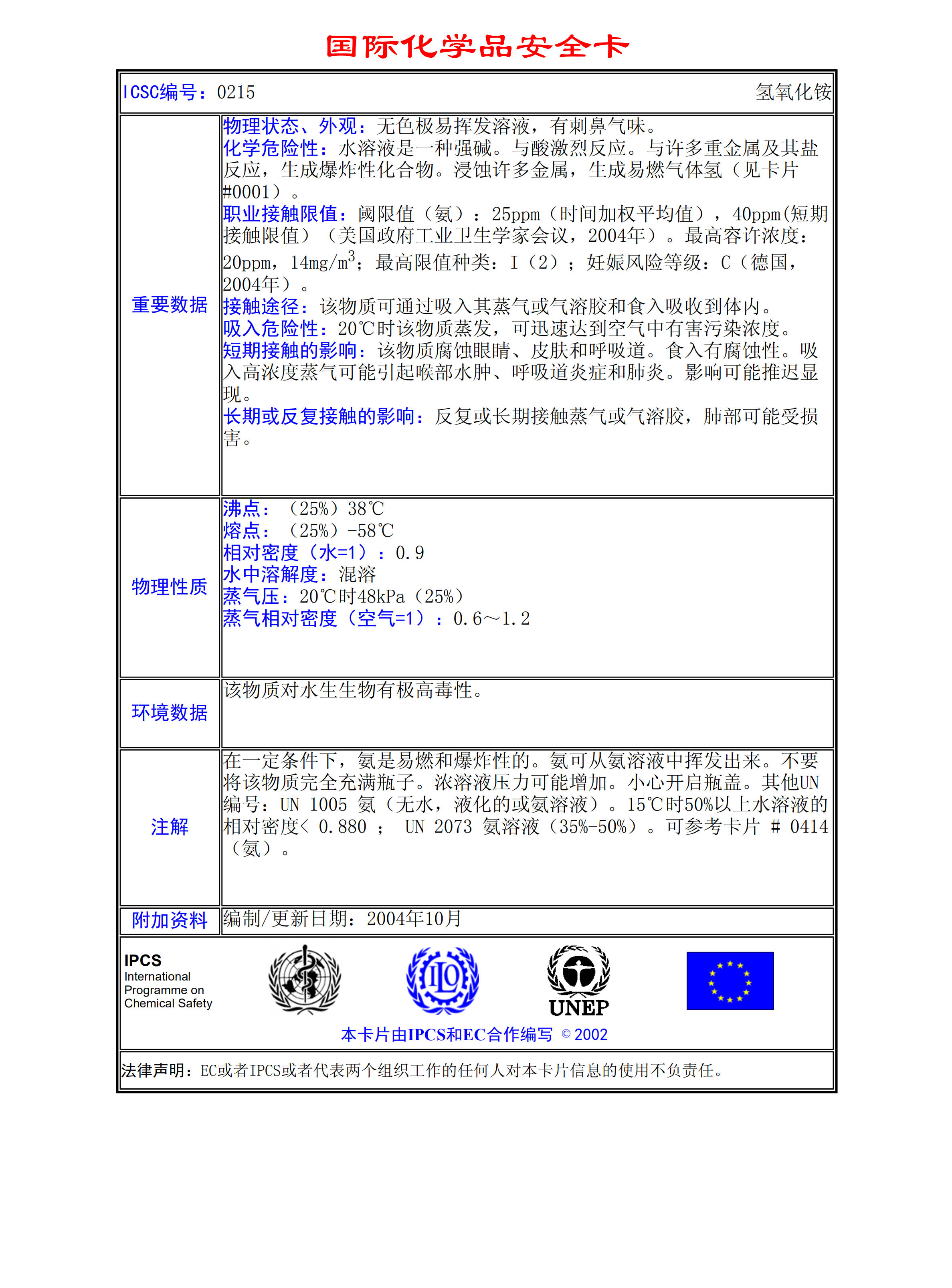 氫氧化銨MSDS