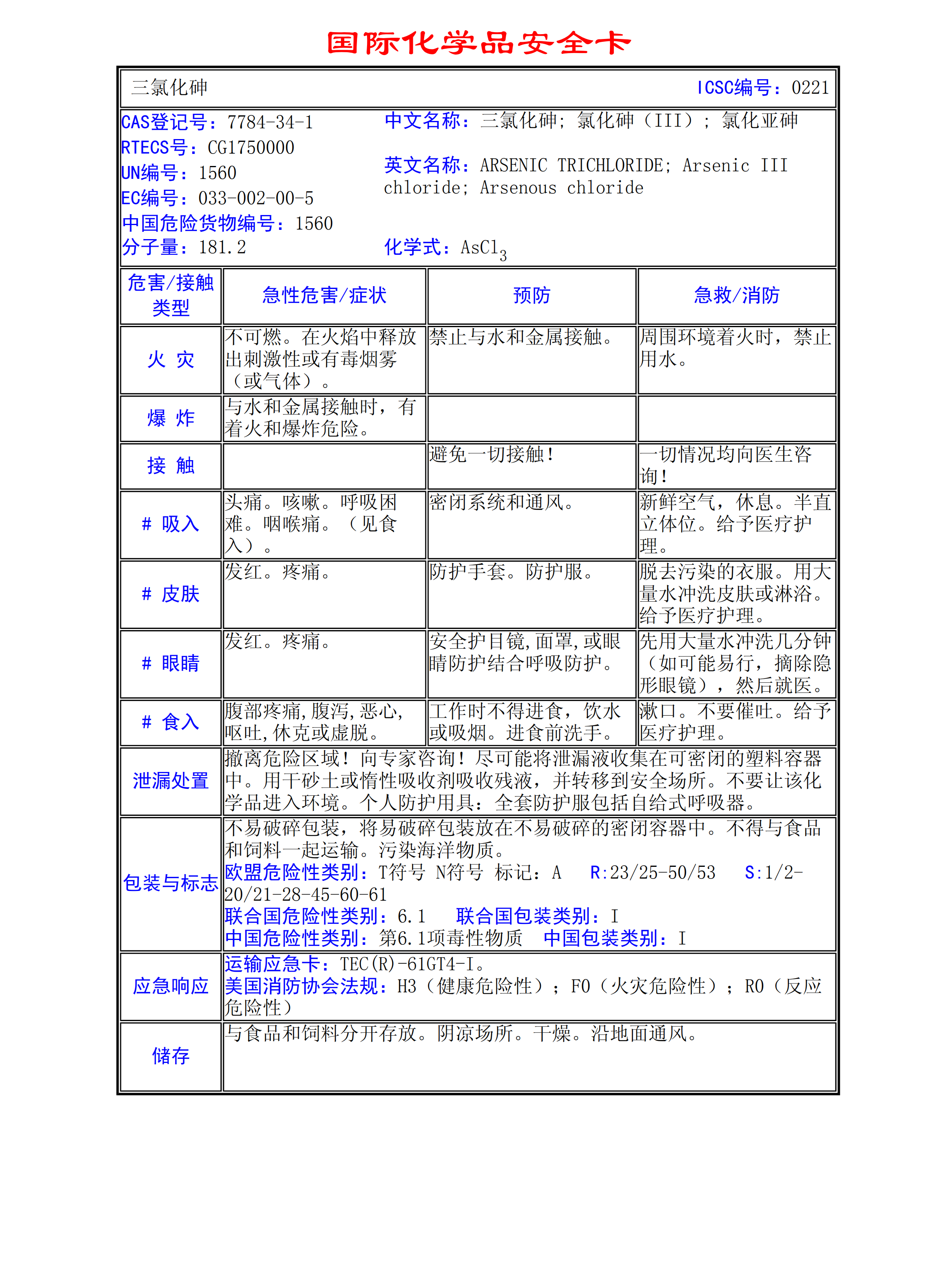 三氯化砷MSDS