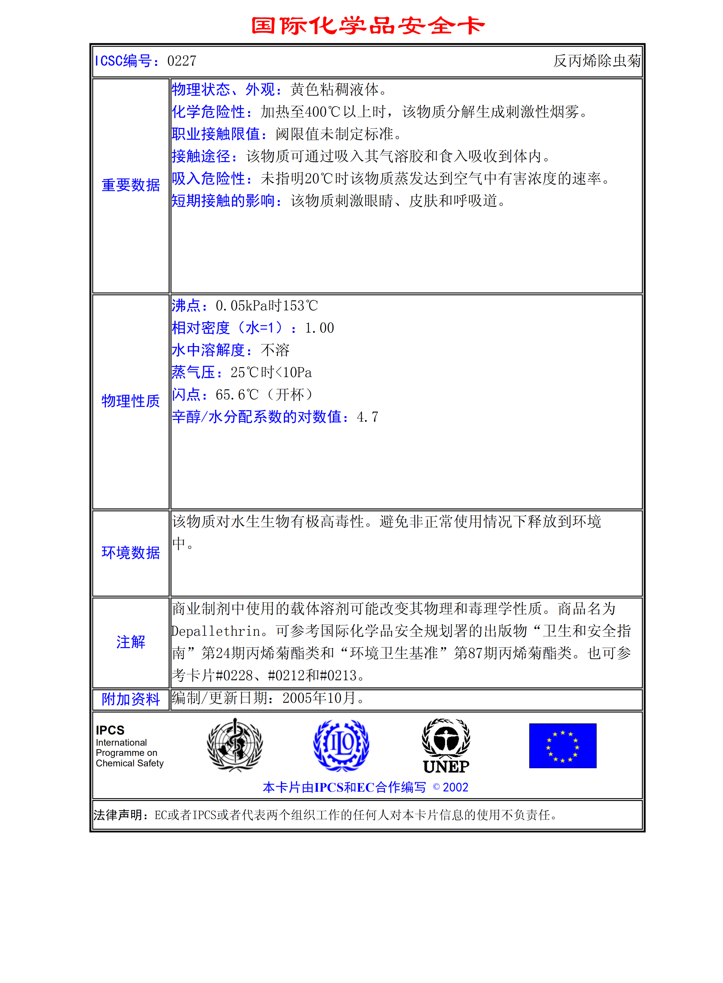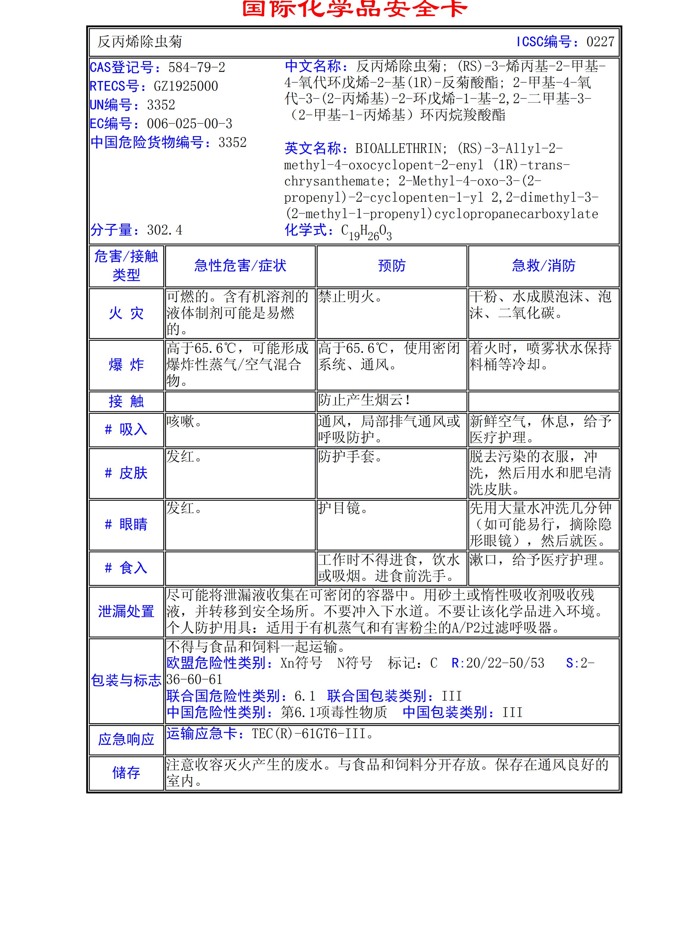 反丙烯除蟲菊MSDS
