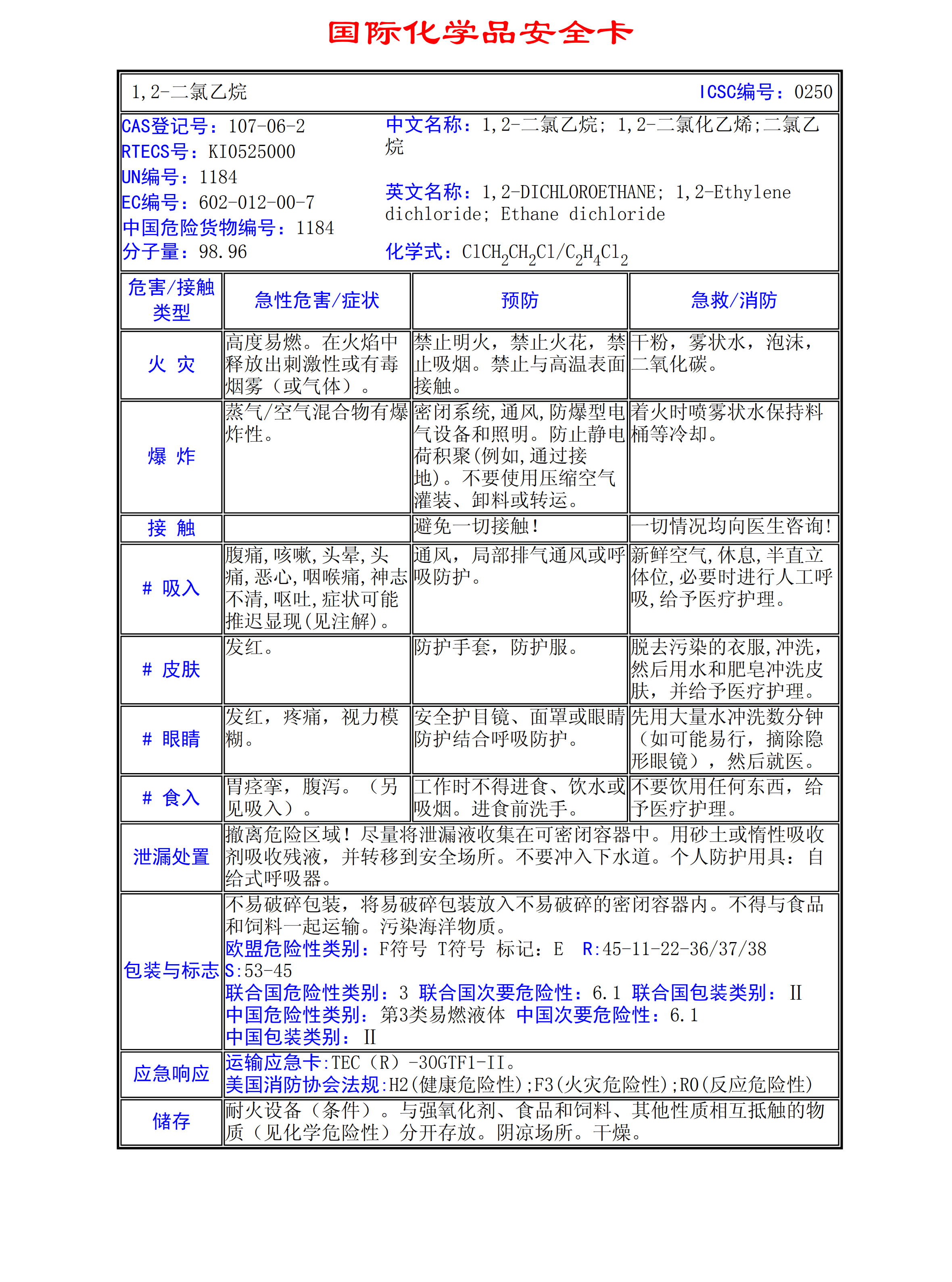 1,2-二氯乙烷MSDS