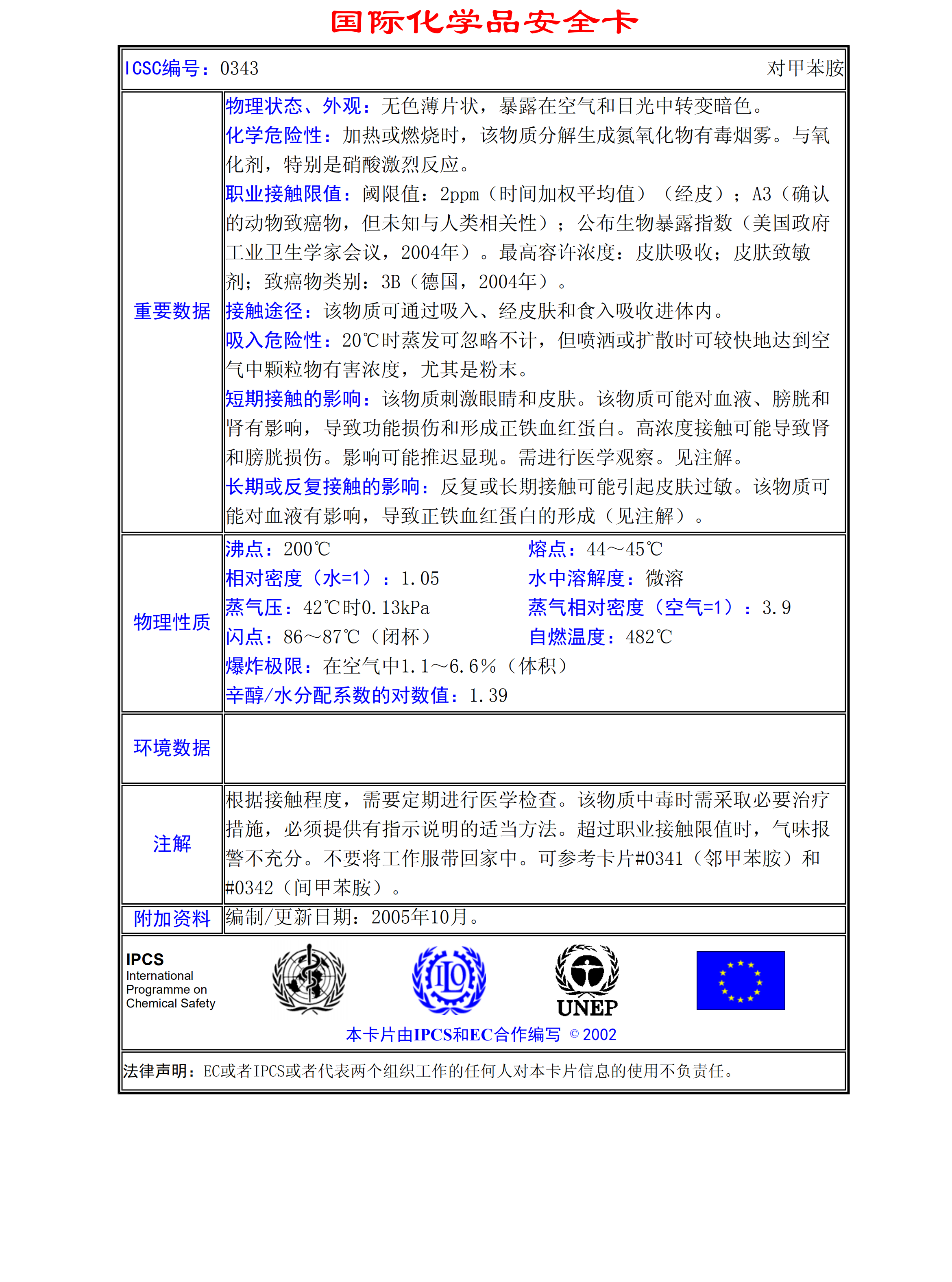 對甲苯胺MSDS