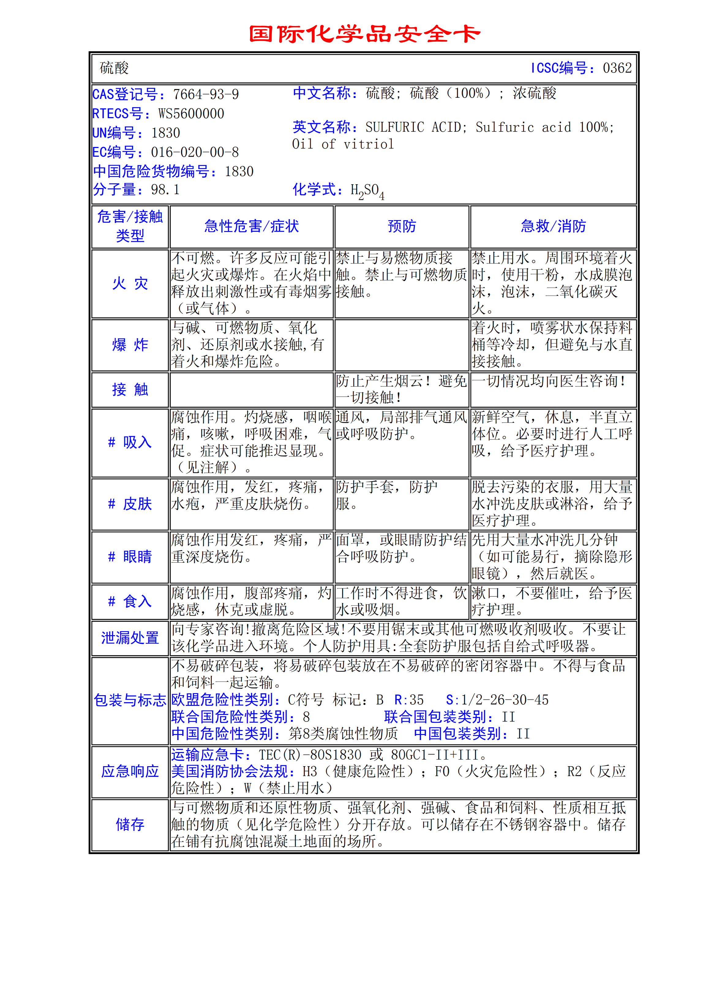 硫酸MSDS