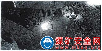 中間巷底板高出工作面刮板輸送機(jī)刮板槽1.2m左右。中間巷以里5m處砰石垛接頂未坍塌,砰石垛高2m、寬2m、長5m,右側(cè)距幫約有0.5m空間。中間巷巷口有錨桿、鋼帶等支護(hù)材料,裸露兩根錨桿有摩擦磨損及切割斷裂痕跡(見圖3)。