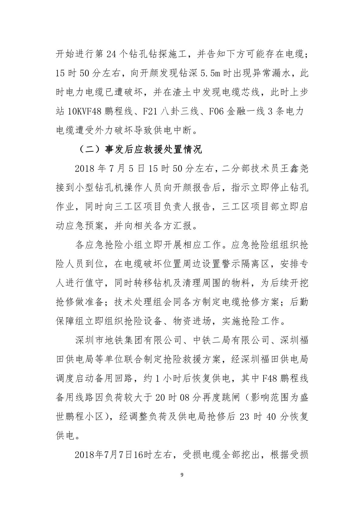 深圳市崗廈北綜合交通樞紐工程“7.07”10kv電力電纜受損事故調(diào)查報(bào)告
