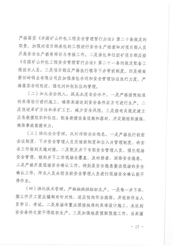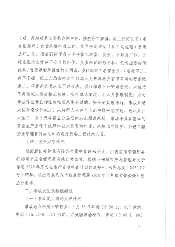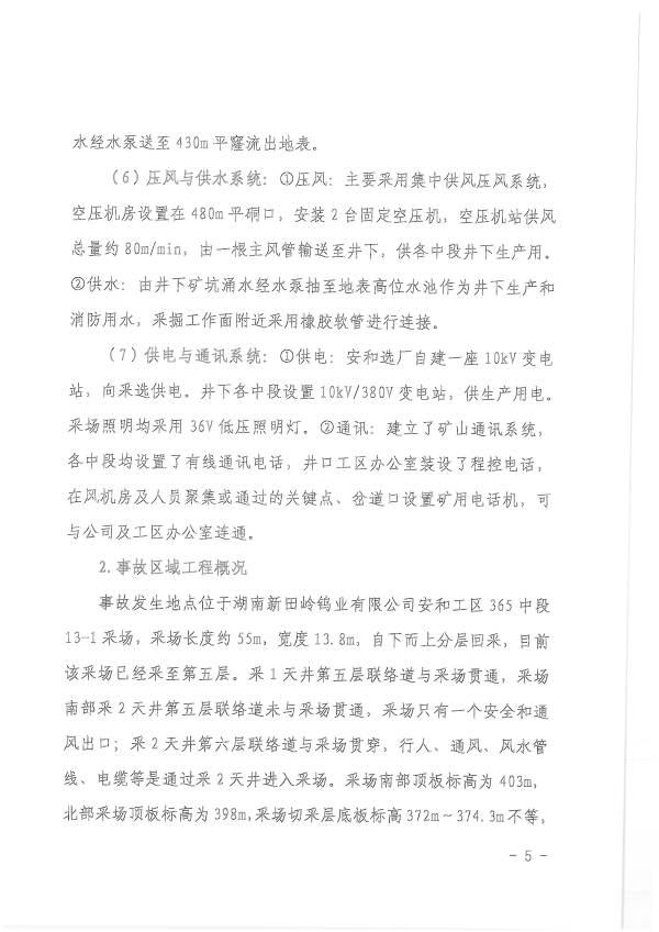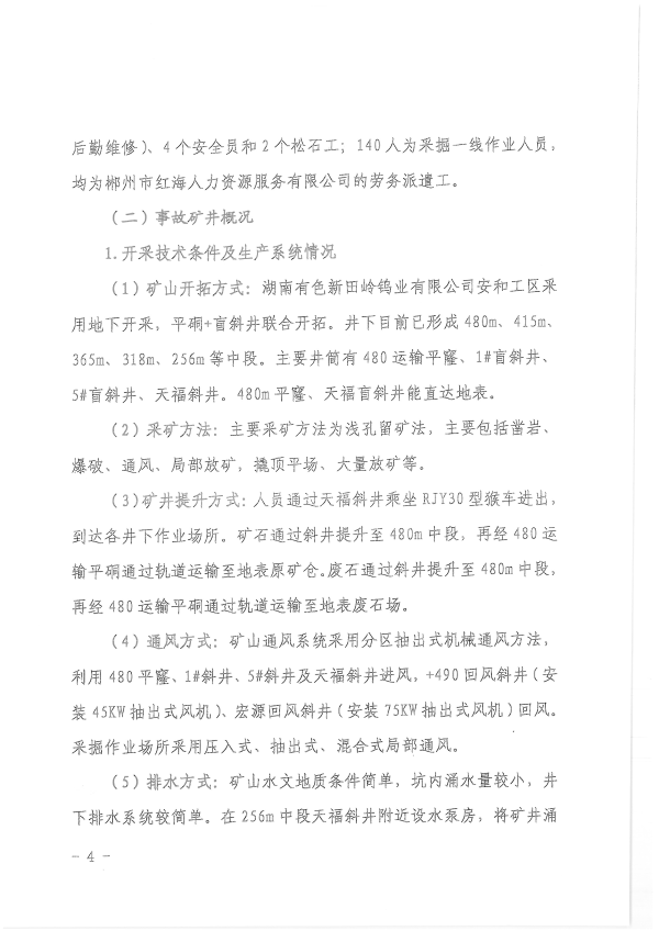 湖南新田嶺鎢業(yè)有限公司“4?19”冒頂片幫事故調(diào)查報告