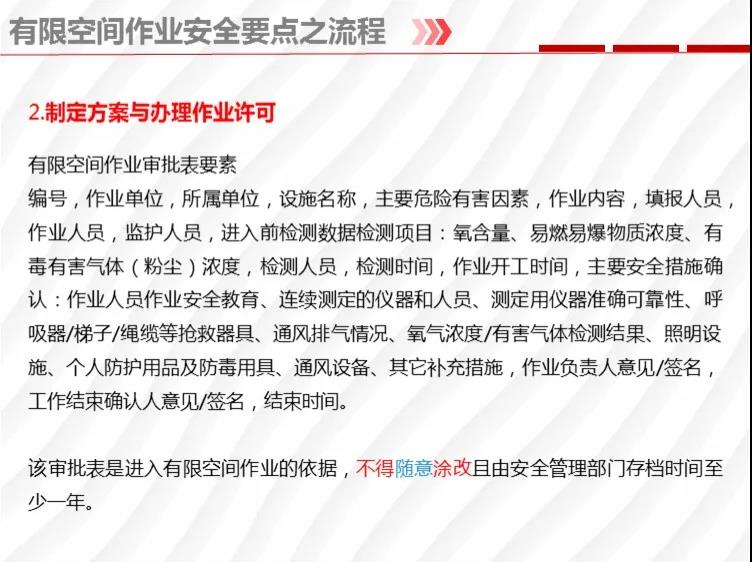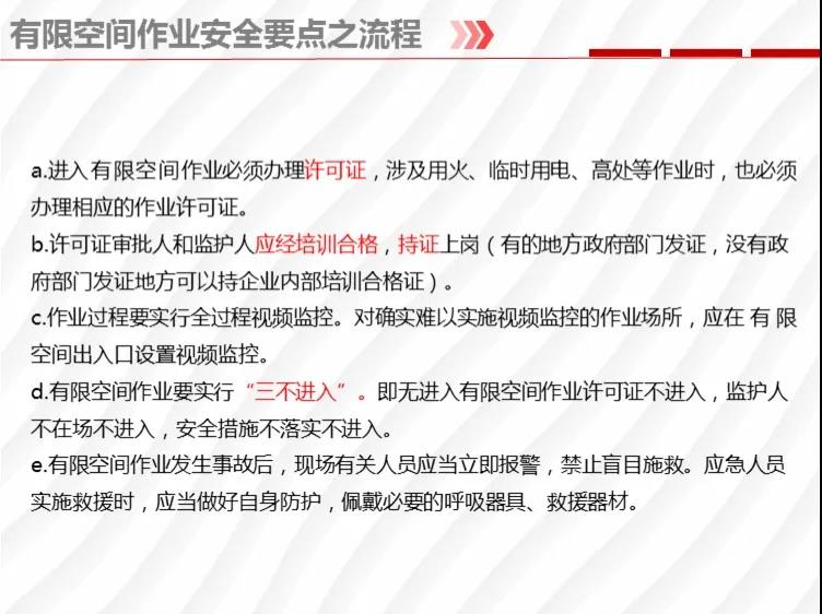 二要嚴格落實有限空間作業(yè)安全管理規(guī)定。各地各有關(guān)部門要督促企業(yè)嚴格執(zhí)行《安徽省有限空間作業(yè)安全管理與監(jiān)督暫行規(guī)定》,凡涉及到有限空間作業(yè),做到“五個必須”,即必須嚴格實行作業(yè)審批制度;必須做到“先通風、再檢測、后作業(yè)”;必須配備個人防中毒窒息等防護裝備,設(shè)置安全警示標識;必須對作業(yè)人員進行安全培訓;必須制定應(yīng)急措施,現(xiàn)場配備應(yīng)急裝備,嚴禁盲目施救。