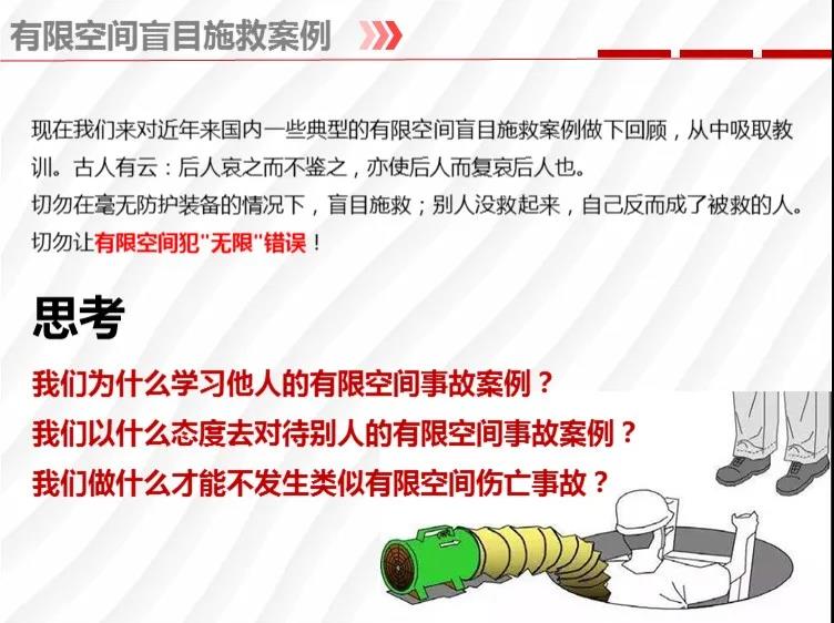 三要全面提高從業(yè)人員安全防范意識。各地各有關(guān)部門要充分利用應(yīng)急廳函〔2020〕299號的4個專題系列折頁,廣泛普及有限空間等危險作業(yè)安全常識和科學施救知識,并督促企業(yè)開展內(nèi)部專題教育,落實崗前培訓,切實使從業(yè)人員了解危險作業(yè)風險,掌握作業(yè)要求,提升安全防范意識和應(yīng)急保護技能。
