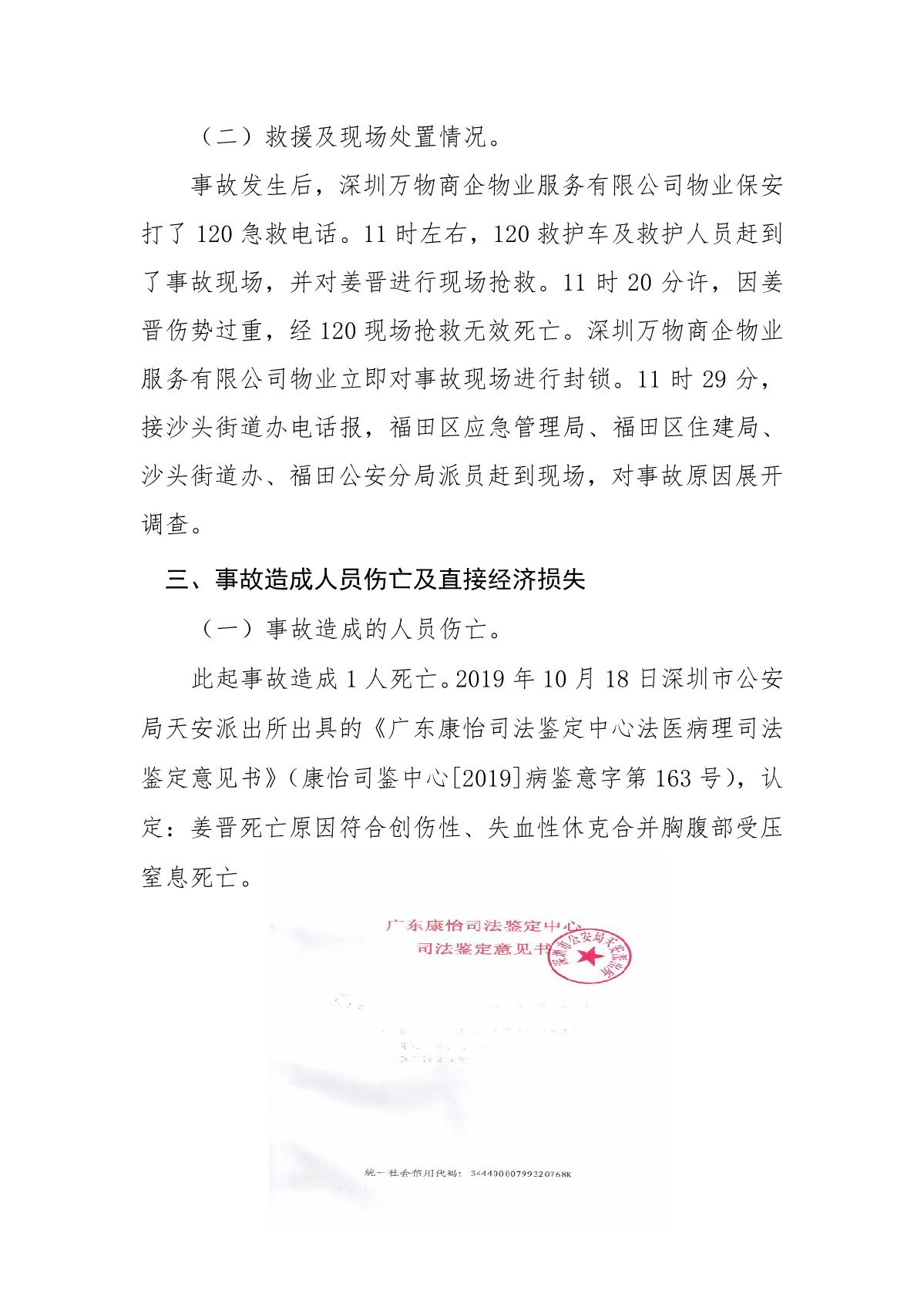 “9.12”福田區(qū)萬科濱海云中心死亡事故調(diào)查報告