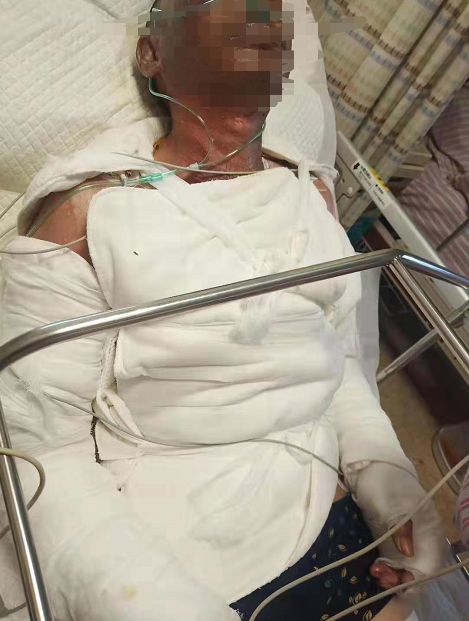 事故發(fā)生后,老吳被緊急送往醫(yī)院接受治療,醫(yī)生確認(rèn)老吳全身多處燒傷,面部尤其嚴(yán)重,部分皮膚甚至呈焦黑色。