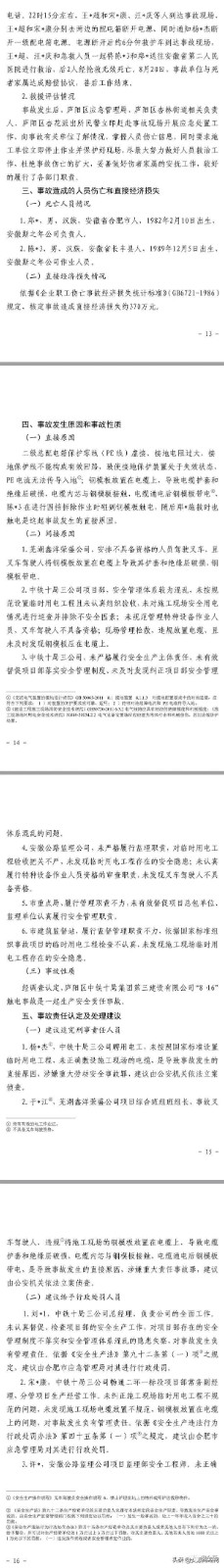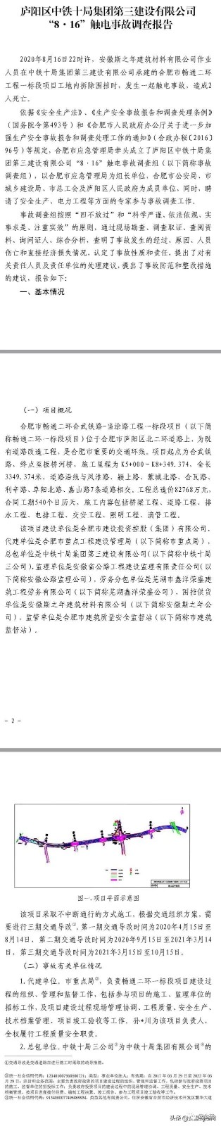 12月2日,合肥應(yīng)急管理局在其官網(wǎng)發(fā)布廬陽(yáng)區(qū)中鐵十局集團(tuán)第三建設(shè)有限公司 “816”觸電事故調(diào)查報(bào)告。
