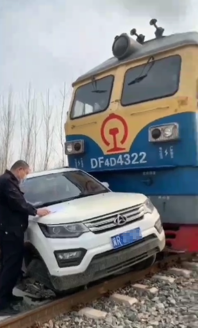 據網傳視頻顯示,一輛車牌為“冀R”開頭的白色SUV,與一列藍黃車頭的貨運火車相撞后,橫停在鐵路中間,白色汽車駕駛座后座的車門已凹陷變形,周圍有不少圍觀群眾。 據當地工作人員證實,的確有這么一件事,具體事故原因還在進一步調查中,后續(xù)會發(fā)布官方通報。據悉,并未有人員受傷。