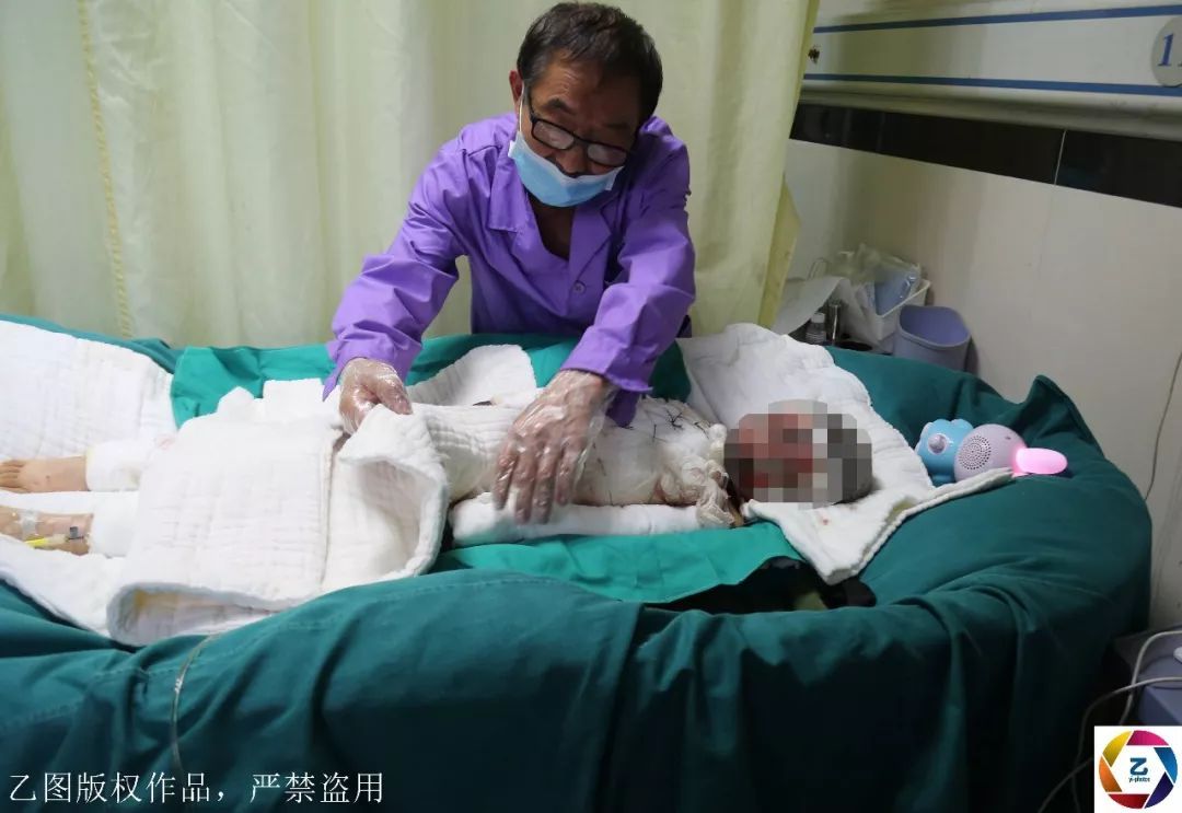 經(jīng)過(guò)搶救,小俊逸幸運(yùn)活了下來(lái)。據(jù)悉,小俊逸在爆炸中重度燒傷,深二度達(dá)9%,深三度達(dá)40%。醫(yī)生說(shuō)孩子的雙手無(wú)法保住,但是馬上截肢孩子會(huì)有生命危險(xiǎn),需要先治療一段時(shí)間后再做手術(shù)。清醒之后的小俊逸不時(shí)痛苦地呻吟,他還不知道,爸爸和哥哥已經(jīng)永遠(yuǎn)離開(kāi)了他。圖為護(hù)工在照顧躺在病床上的小俊逸。
