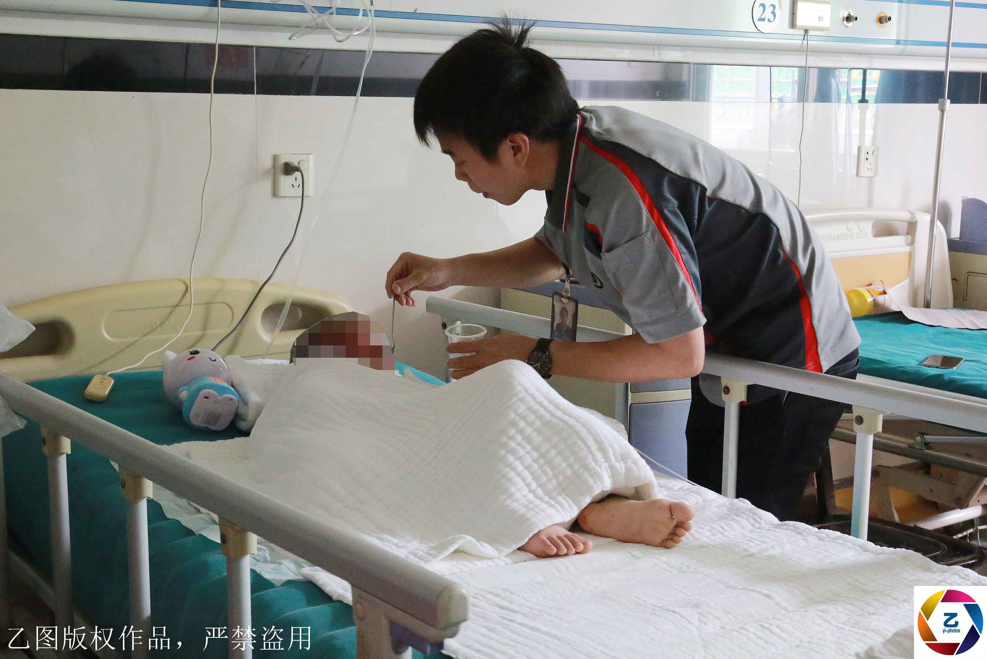 時(shí)間回到47天前。2019年2月21日上午,廣州白云區(qū)夏茅村的一棟樓405室,突然''砰''一聲巨響,屋內(nèi)火光四射,濃煙滾滾。伴隨著爆炸聲,屋內(nèi)傳來(lái)凄厲的哭喊和求助聲。樓梯處不斷有居民往外面的安全地帶跑,隨后樓下居民立即撥打了119消防熱線。圖為一個(gè)護(hù)工在照顧小俊逸。