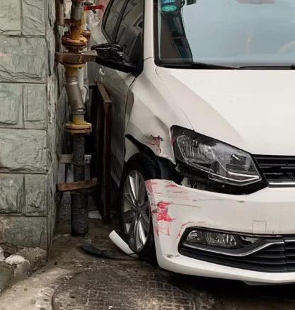 經(jīng)了解,小區(qū)住戶薛某當(dāng)天駕駛著一輛白色大眾小轎車回家,開到事發(fā)地時,薛某感覺車子后面撞到了什么東西,一時緊張就猛打方向盤,結(jié)果導(dǎo)致車子不停在原地打轉(zhuǎn),不但撞壞了周圍的天然氣管道、消防栓,停在附近的三輛私家車也不同程度受損。