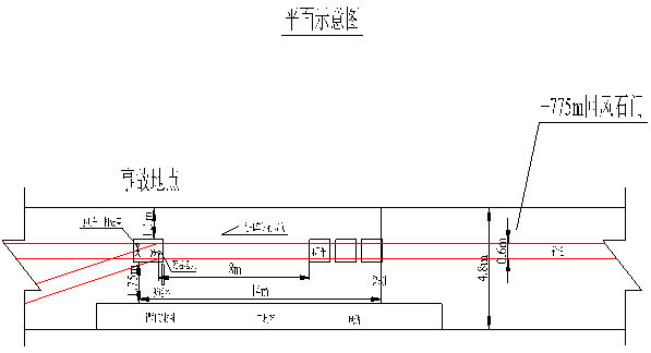 +775m回風(fēng)石門設(shè)計(jì)長(zhǎng)度580m,已施工241m,坡度3‰,直墻半圓拱斷面, 巷道凈寬4.8m,凈高4m,凈斷面積16.81㎡,支護(hù)方式為錨網(wǎng)索噴。巷道內(nèi)鋪設(shè)軌道軌距為600mm,事故地點(diǎn)鋪設(shè)單道。