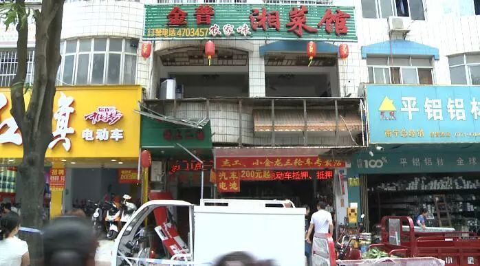 記者趕到這家餐廳時(shí)看到,現(xiàn)場已經(jīng)拉起了警戒線,消防人員也已離開,派出所民警正在對過往行人進(jìn)行疏導(dǎo)。事發(fā)餐廳位于人行道邊2樓的位置,沿街的玻璃已經(jīng)全部震碎,并散落到人行道上,餐廳1樓電動車修理鋪的招牌也在事故中被震落。