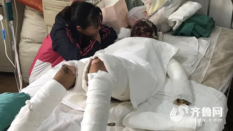 李慧霞介紹說:“9月10號液化氣泄漏,引起他父子燒傷,然后送于高密市人民醫(yī)院,結(jié)果高密人民醫(yī)院說是病情嚴(yán)重沒接收,然后轉(zhuǎn)入濰坊市人民醫(yī)院,醫(yī)生診斷說孩子的父親是90%燒傷面積以上,孩子是40%以上的燒傷面積。”