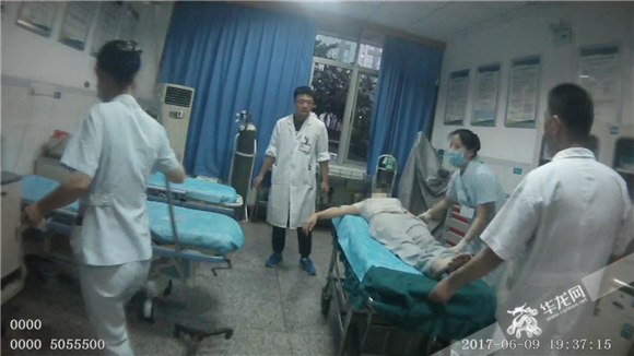 19點(diǎn)30分,120還沒有到達(dá)現(xiàn)場(chǎng)。為了贏得最佳的搶救時(shí)間,民警緊急將當(dāng)事女子抬上警車,警笛一路呼嘯,在19點(diǎn)36分,將其送到了最近的第九人民醫(yī)院急診科救治。