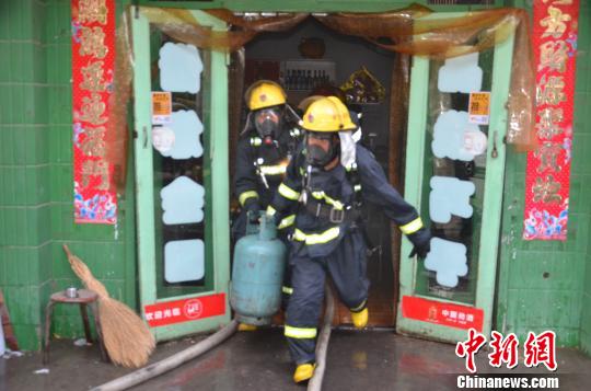 飯店負(fù)責(zé)人告訴消防官兵,飯店內(nèi)一共有三具液化氣罐,其中,兩個(gè)放在廚房的液化氣罐有一個(gè)已被明火吞沒,他們?cè)雽⒈粺囊夯瘹夤蘖喑鰜?,但因火?shì)太猛而未能成功。